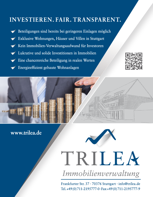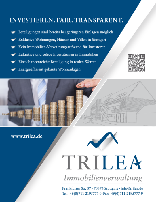 Durch die regionale Spezialisierung der Trilea GmbH auf den Stuttgarter Raum wird auf einem der rentabelsten Teilmärkte Deutschlands operiert.